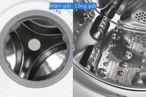 Lồng giặt thép không gỉ, giúp hạn chế vi khuẩn và nấm mốc, đảm bảo quần áo luôn sạch thơm.